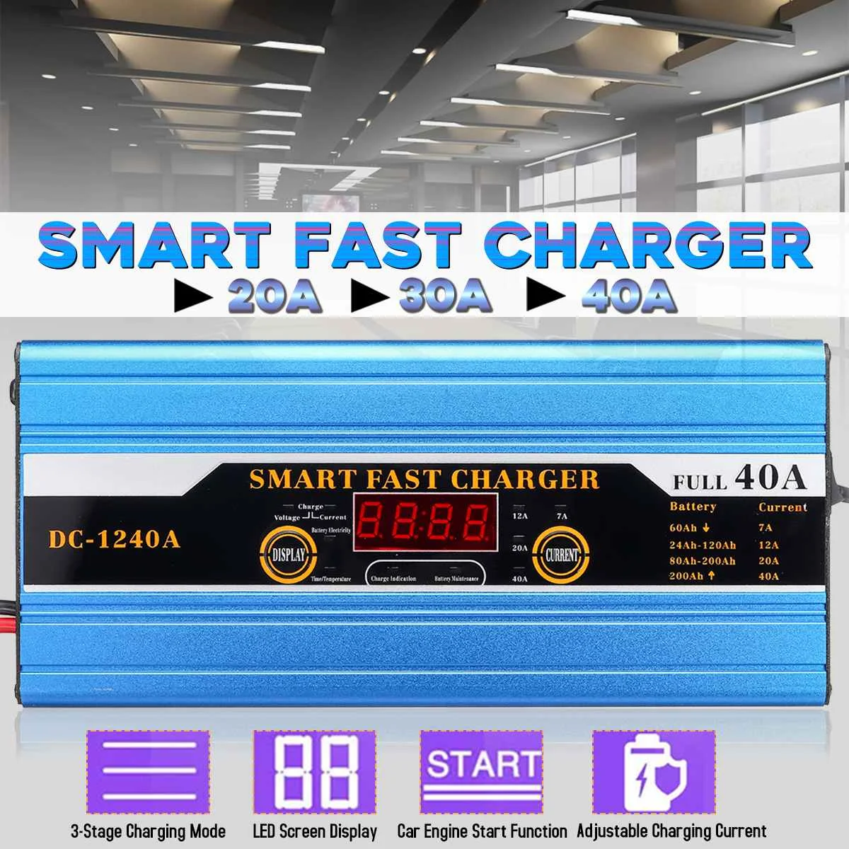 Buy Now 20A/30A/40A Car Battery Lead-acid Smart Charger For Car Motorcycle LCD Display Protection Caravans