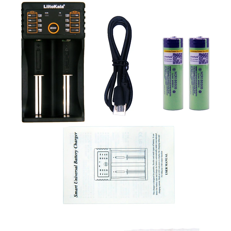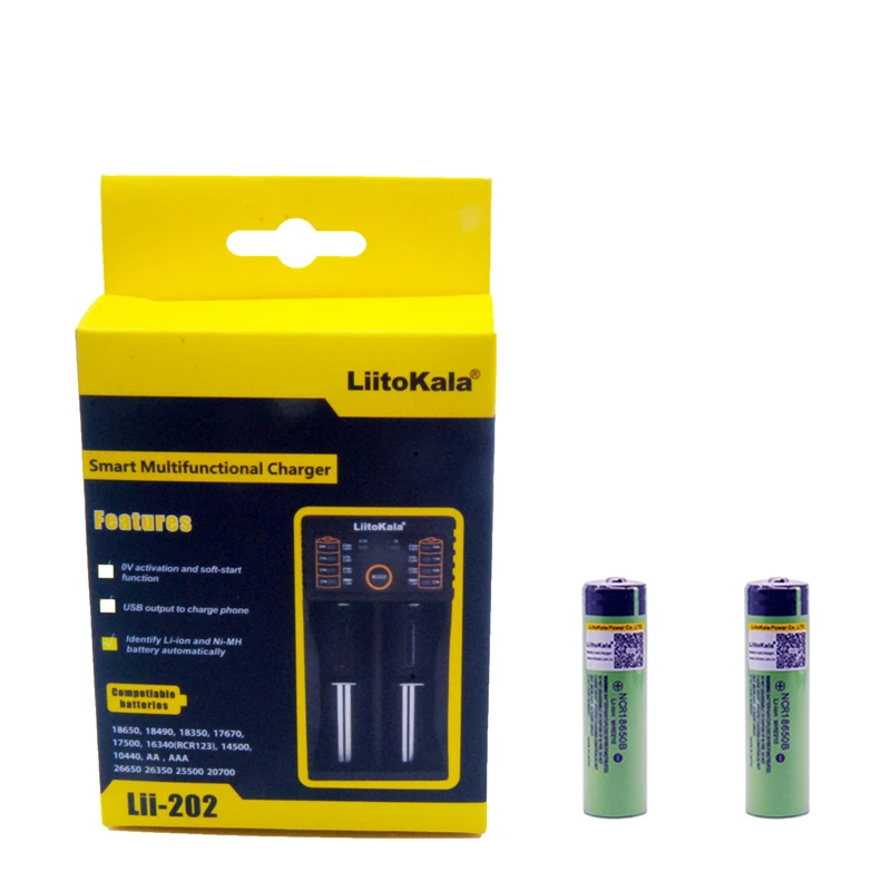 Best Product 2pcs Liitokala 3.7V 3400mAh 18650 Li-ion Rechargeable Battery (NO PCB) + Lii-202 USB 26650 18650 AA