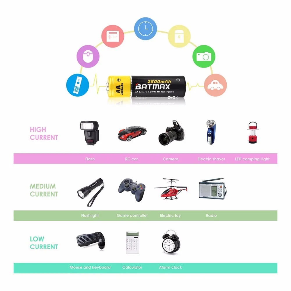 Best Seller 4 Packs High-Capacity 2800mAh AA NiMH Rechargeable Batteries for Camera Calculator MP3 Player ect.