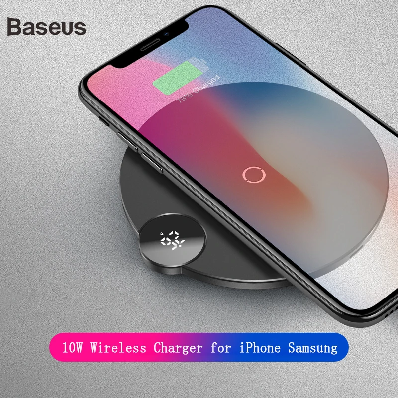 Buy Now Baseus 10W Wireless Charger for iPhone XS Max XR X 8 Digital Display QI Wireless Charger Pad for Sa