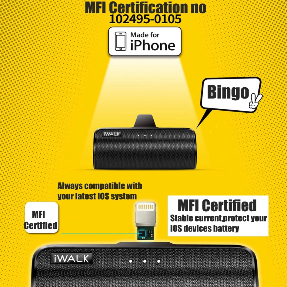 Best Seller iWalk 5000mah Pocket Power Bank Type C with Built in MFI 8 Pin Cable 1.5A 1A for Apple iPhone X Xia