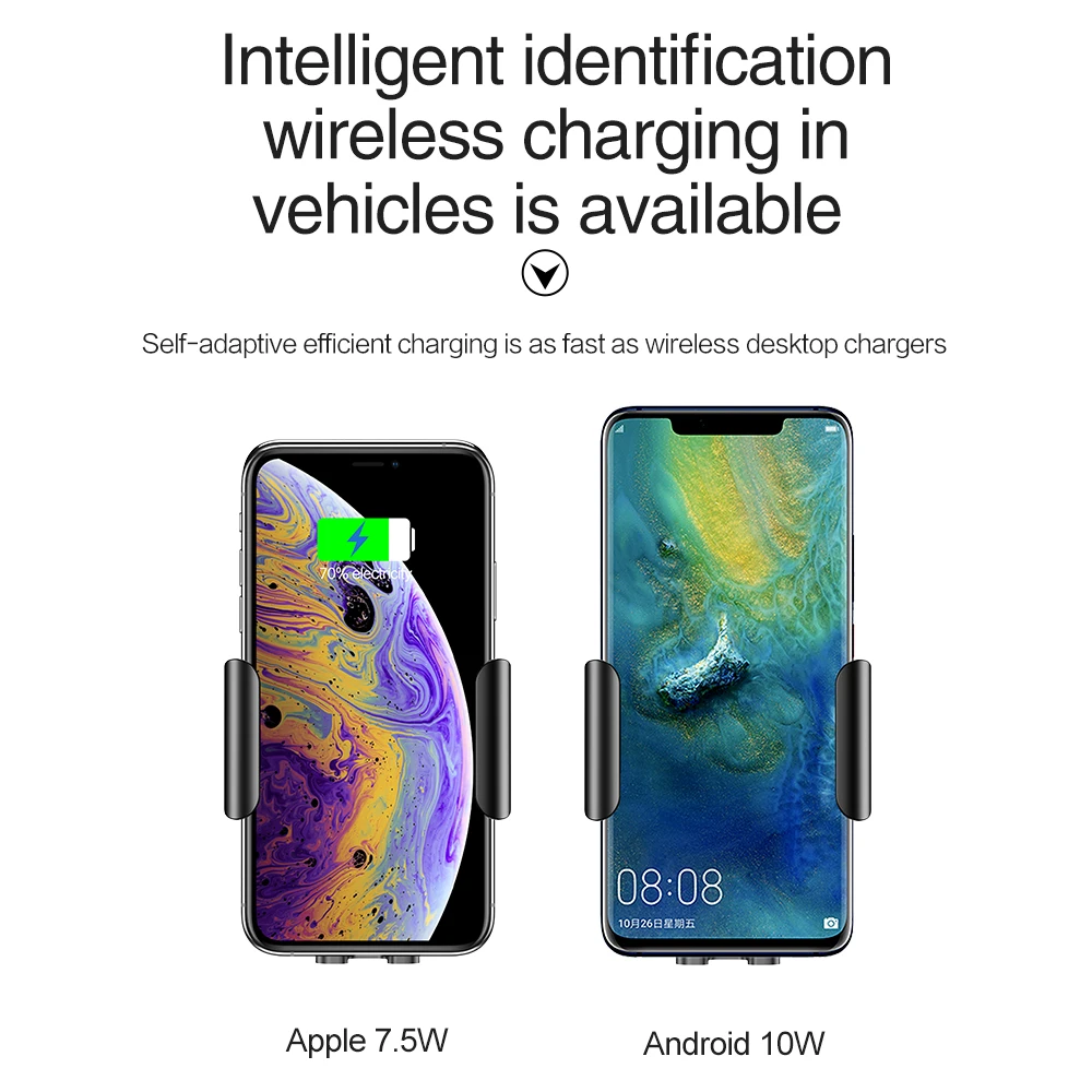 ROCK 10W QI Wireless Infrared Sensor Automatic Car Charger for Samsung Galaxy S8 S9 Gravity Holder Quick Charge Charging Stand
