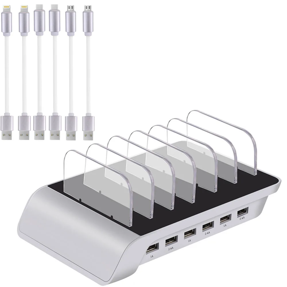 Best Product USB Charging station 6 Port with 6 cables 5V10.2A Universal USB Charger Station Stand Holder Deskto