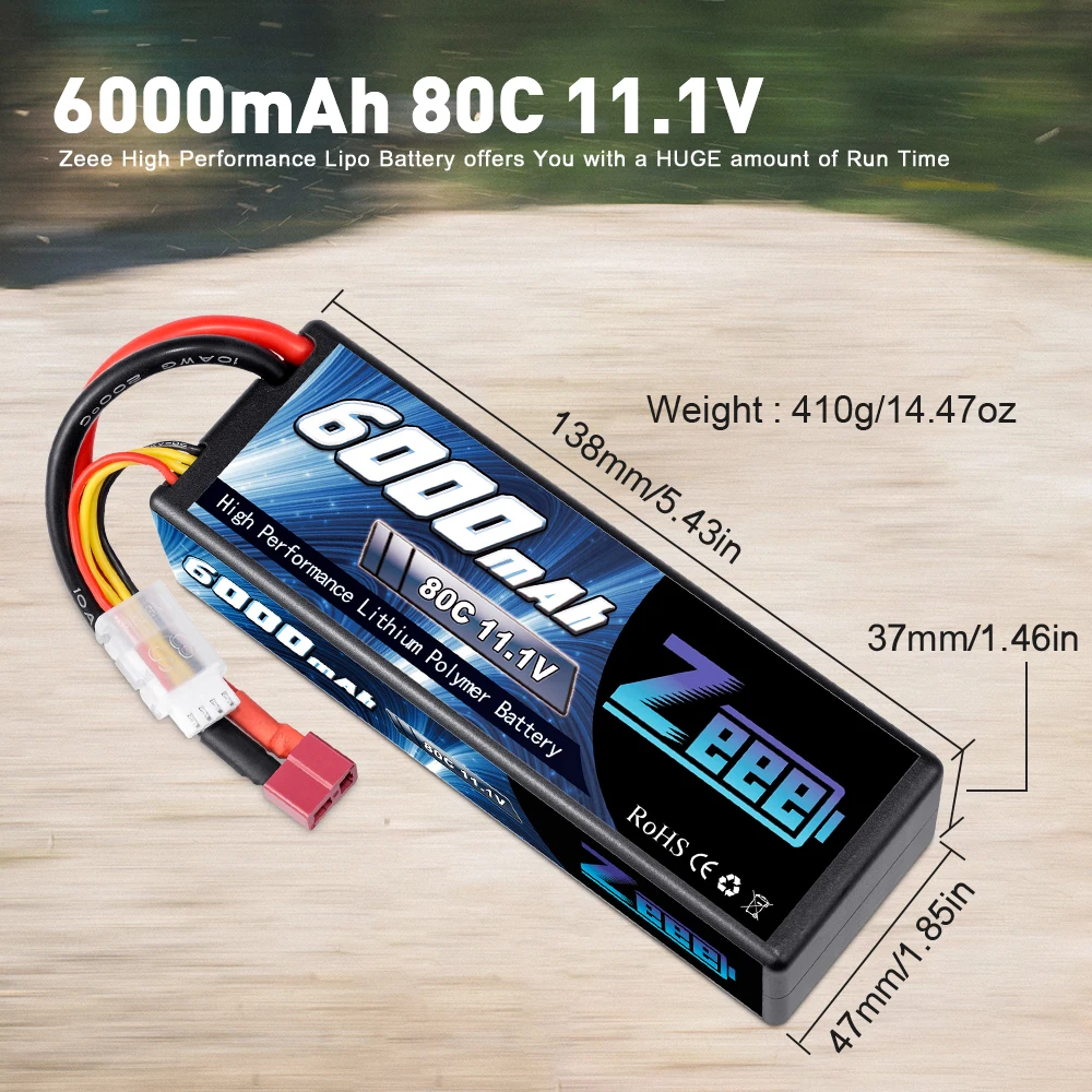 Hot Sale Zeee 11.1V 6000mAh 3S 80C Lipo Battery with Deans Plug RC Battery Charger for RC Car Truck Truggy F
