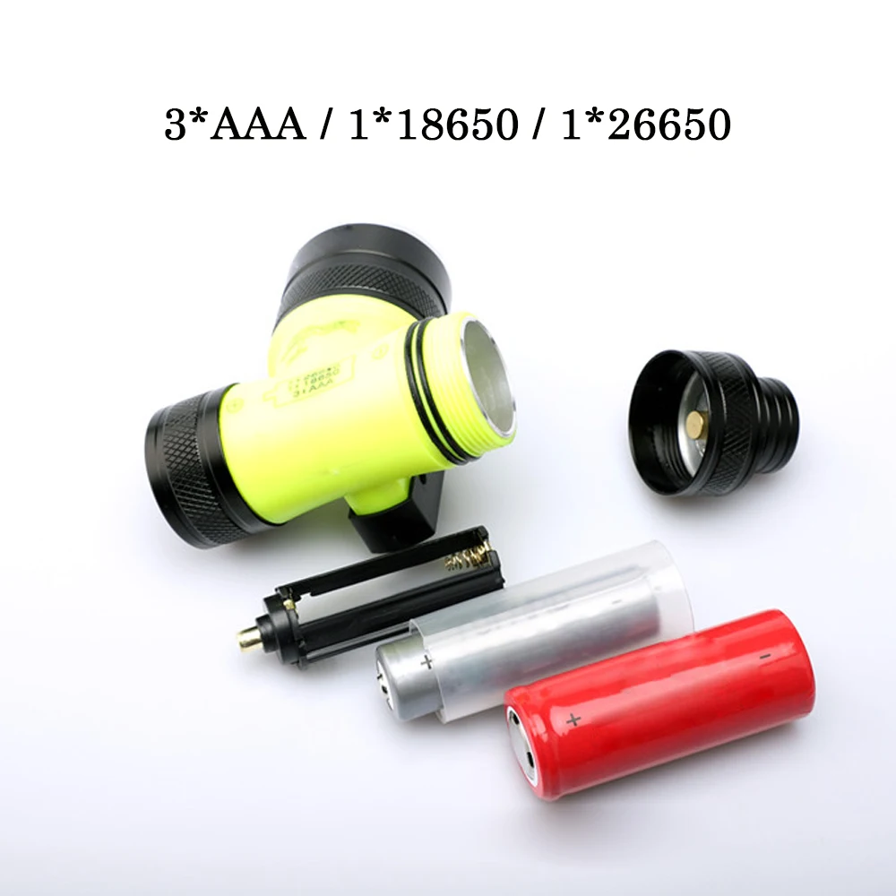 Diver Diving Flashlight underwater 100 m 18650 or 26500 white yellow uv light diving light XML-2 T6 led torch lanterna dive led