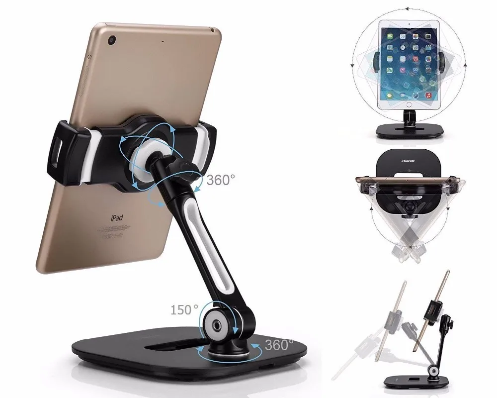 LARICARE Aluminum Tablet Stand Adjustable with Black and White Clamp for iPad phone Ergonomic Tablet Holder