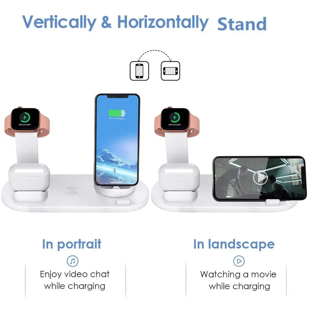 DCAE Wireless Charger Stand 4 in 1 Charging Station LED Qi Fast 15W For iPhone 11 Pro Max XS XR X 8 Airpods Apple Watch 5 4 3 2