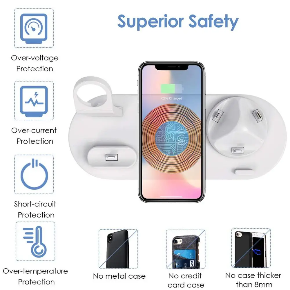DCAE 10W Qi Wireless Charger 4 in 1 Charging Dock Station For iPhone 11 XS XR X 8 Airpods Apple Watch 5 4 3 2 for Samsung S10 S9